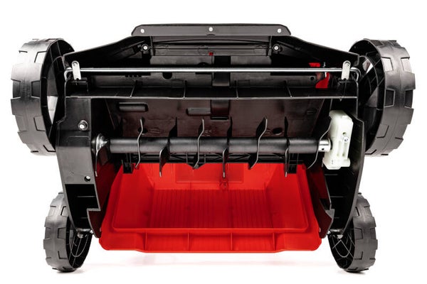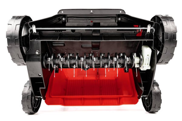 silnik elektryczny 1800W, 230V, szerokość robocza 38cm, 16 noży obrotowych, kosz 45L, centralna regulacja głębokości roboczej, wymienny wałek ze sprężynkami